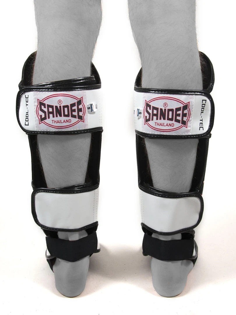 Raised knee area, additional contoured shin ridge, and full foot cover for ultimate shock absorbtion and additional safety in sparring.