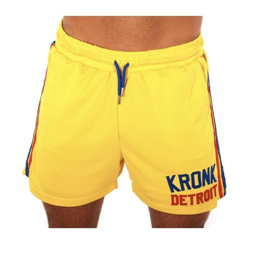 Men’s KRONK Iconic Detroit applique lined shorts with side stripes and contrast drawstrings.